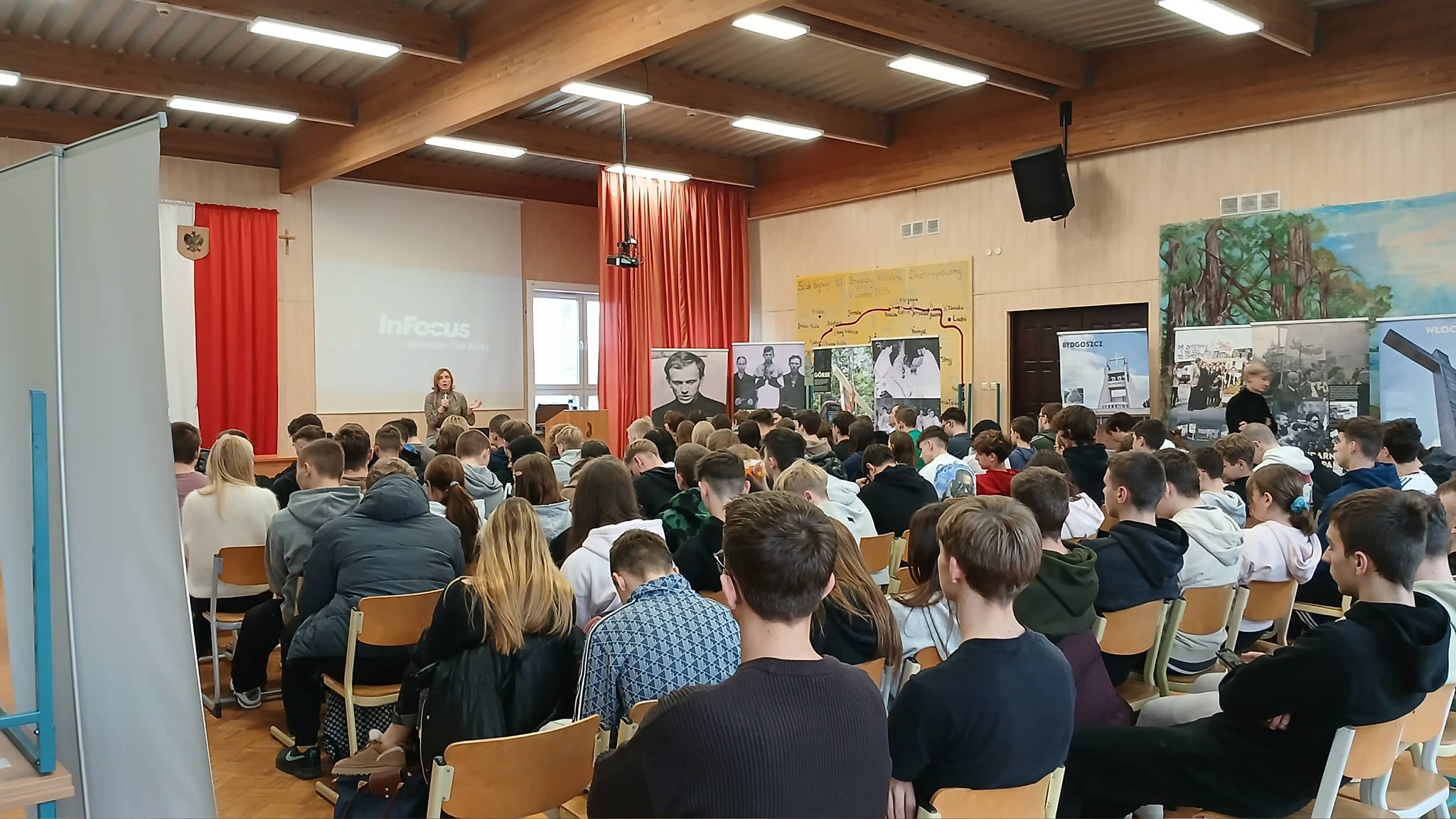 „Historia ks. Jerzego Popiełuszki” taką wystawę i prelekcję przeprowadziła dziś Pani dr Katarzyna Maniewska z IPN w Bydgoszczy w ramach spotkań z historią współczesną.
