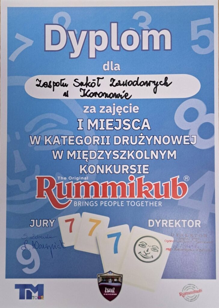 Sukces naszych uczniów w międzyszkolnym konkursie Rummikub w Zespół Szkół Ogólnokształcących i Zawodowych w Solcu Kujawskim!
