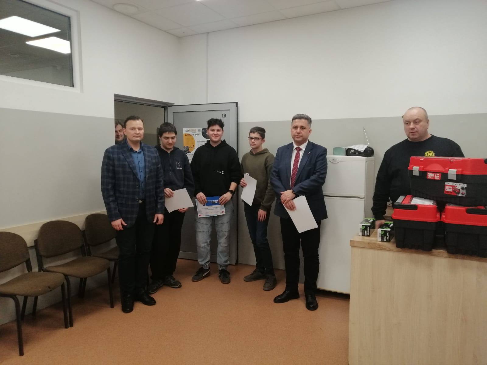 Konkurencje nadzorowali Pan Michał Kowalski, Pan Andrzej Jasik, Pan Tomasz Piasecki oraz prowadzący konkurs Kierownik Warsztatów Szkolnych Pan Krzysztof Bak.