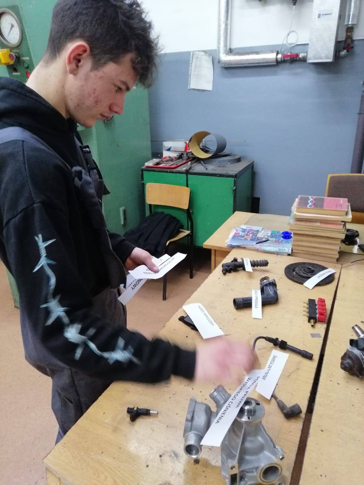 Dziś uczniowie klasy 1 AB uczestniczyli w świątecznym konkursie motoryzacyjnym dla mechaników pojazdów samochodowych pn. „MOTO-GWIAZDKA”.