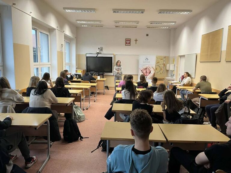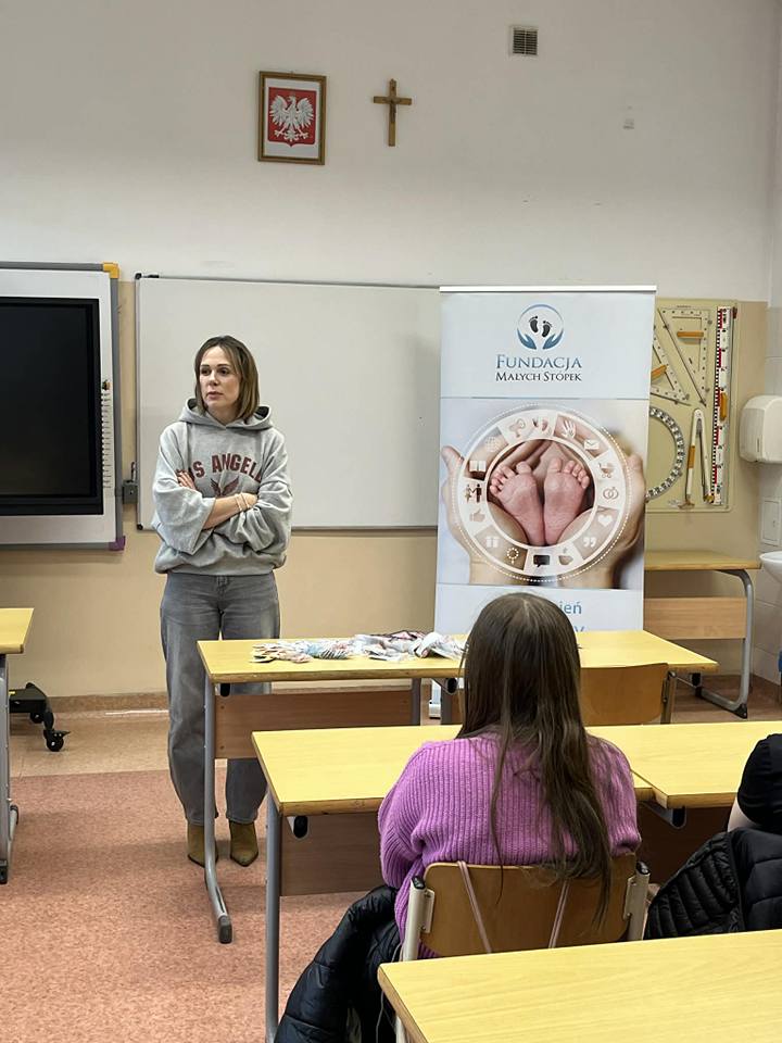 Naszą szkołę odwiedziła Pani Marta Wielgosz z Fundacji ,,Małych Stópek Ambasadorzy Starogard Gdański”, która zajmuje się pomocą matkom samotnie wychowującym swoje dzieci.