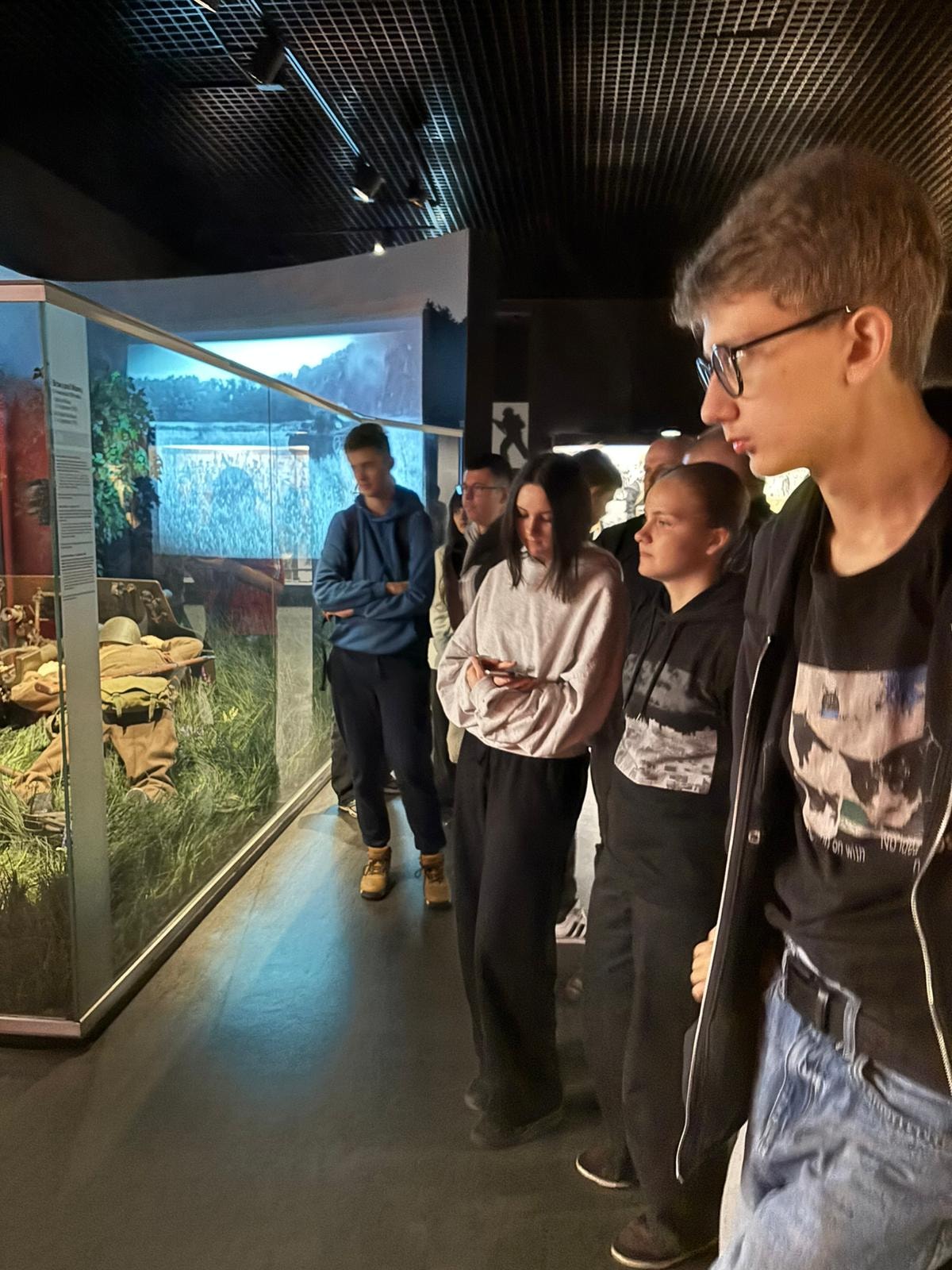 Wczoraj klasy 1T oraz 1TLW wraz z opiekunami udali się do Muzeum Wojsk Lądowych w Bydgoszczy. Po dotarciu na miejsce zostaliśmy przywitani przez przewodnika, który oprowadził nas po wystawach stałych i ekspozycji plenerowej. Zobaczyliśmy bogatą kolekcję historycznej broni, umundurowania oraz wyposażenia żołnierzy z różnych epok, od średniowiecza do II wojny światowej. Szczególnie interesująca była wystawa poświęcona odznakom Wojska Polskiego po 1945 roku. Przewodnik w bardzo przystępny sposób opowiadał o historii prezentowanych przedmiotów, łącząc je z ważnymi wydarzeniami historycznymi, co pomogło nam lepiej zrozumieć przebieg dziejów Polski. Kolejnym punktem wyjazdu był Park 17 Centrum zabaw i trampolin. Po dotarciu do Parku 17, uczniowie zostali zapoznani z regulaminem obiektu oraz przeszli obowiązkową, profesjonalną rozgrzewkę pod okiem instruktora. Następnie mieli możliwość swobodnego korzystania z różnorodnych stref aktywności, w tym: